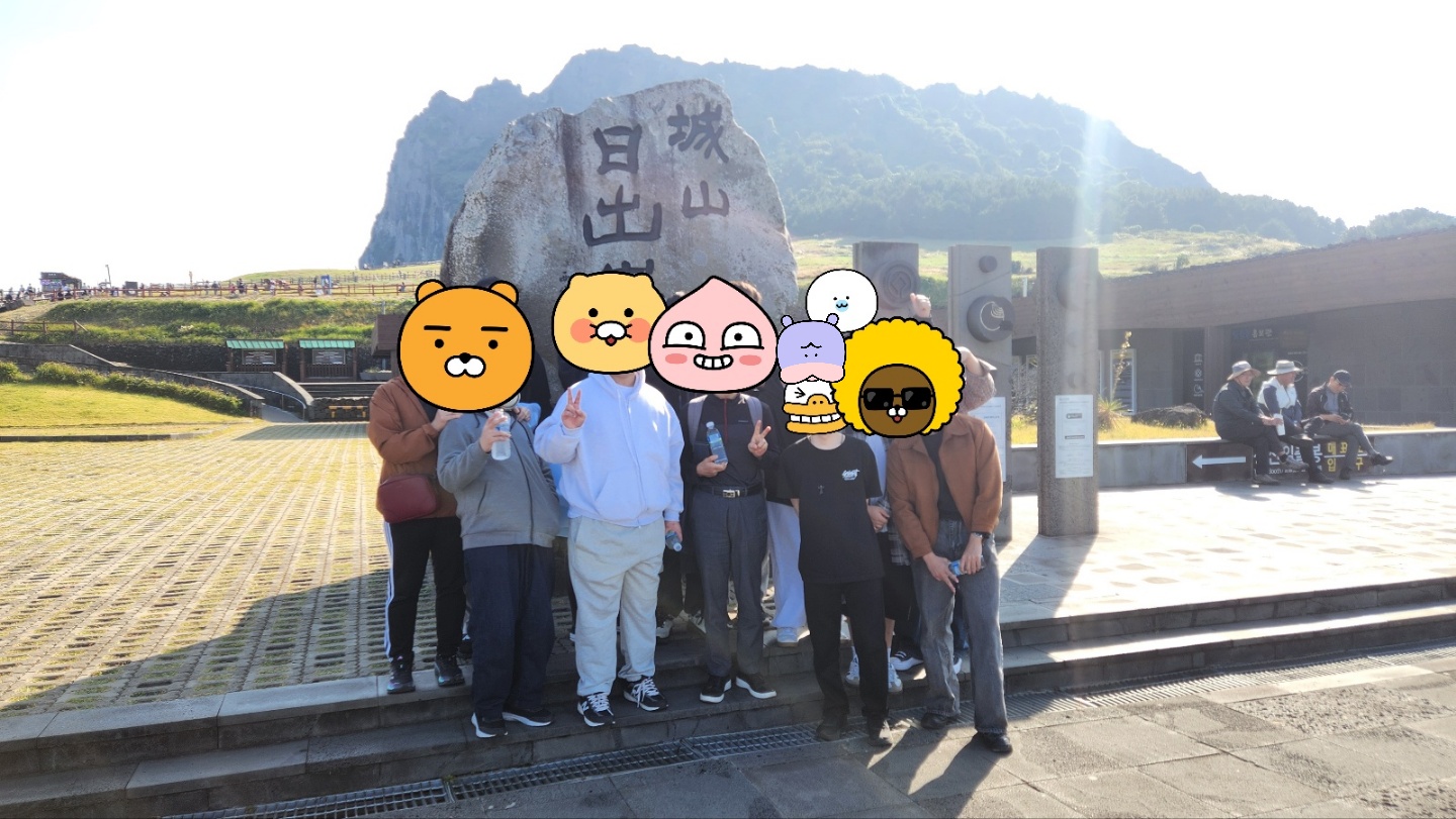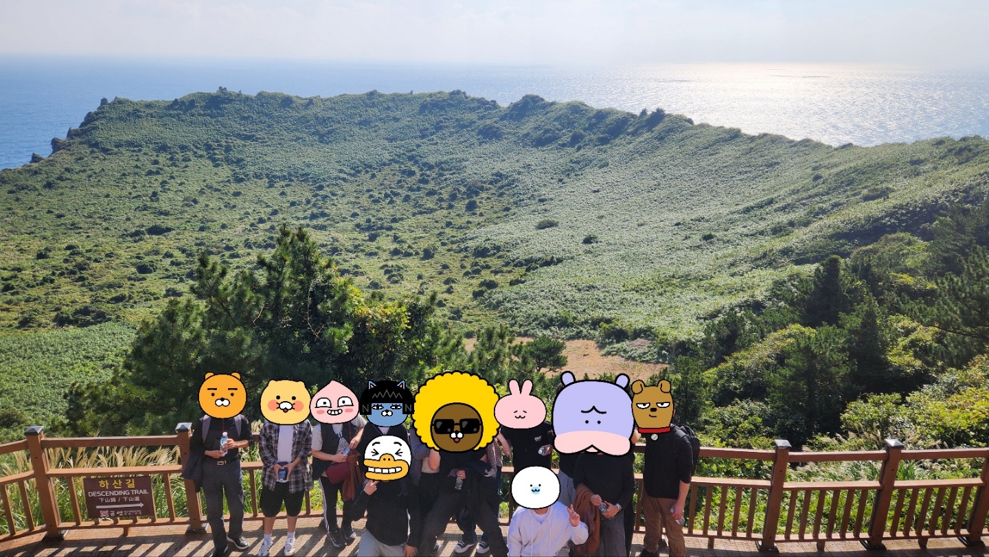 아침에는 제법 쌀쌀한 바람을 맞으며 성산일출봉에 올라 아름다운 제주도를 한눈에 내려봤습니다. 등반하는 것이 쉽지 않았지만 포기하지 않고 모두가 정상에 올라 사진도 찍어 행복을 만끽했습니다.
