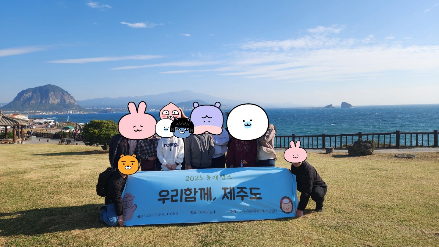여가문화사업의 일환으로 11월 5일, 저희는 제주도로 동계캠프를 떠났습니다. 시원한 가을 바람 속에서 즐거운 추억을 만들기 위해 제주도의 자연을 만끽할 수 있는 프로그램을 준비했습니다.