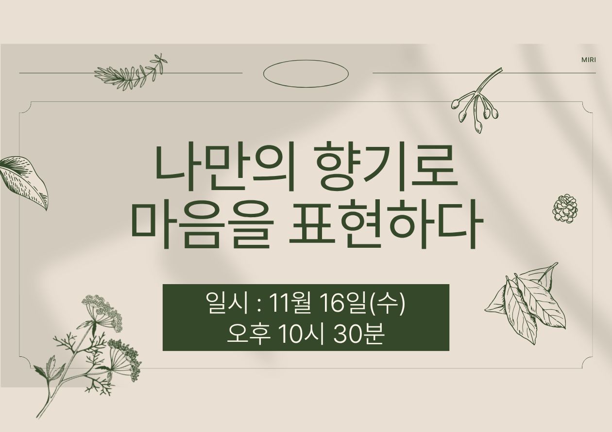 11월 26일 우리는 각자 본인들의 향기를 찾으러 향수 공방에 방문했습니다.본인의 감정과 특색에 맞춰 향기를 조합하여 각자 완벽한 향수를 만들었습니다!옆에 친구들의 향기도 맡아 칭찬하고 향을 통해 공감하며, 갑자기 추워진 날씨를 함께 녹이는 시간을 가졌습니다!