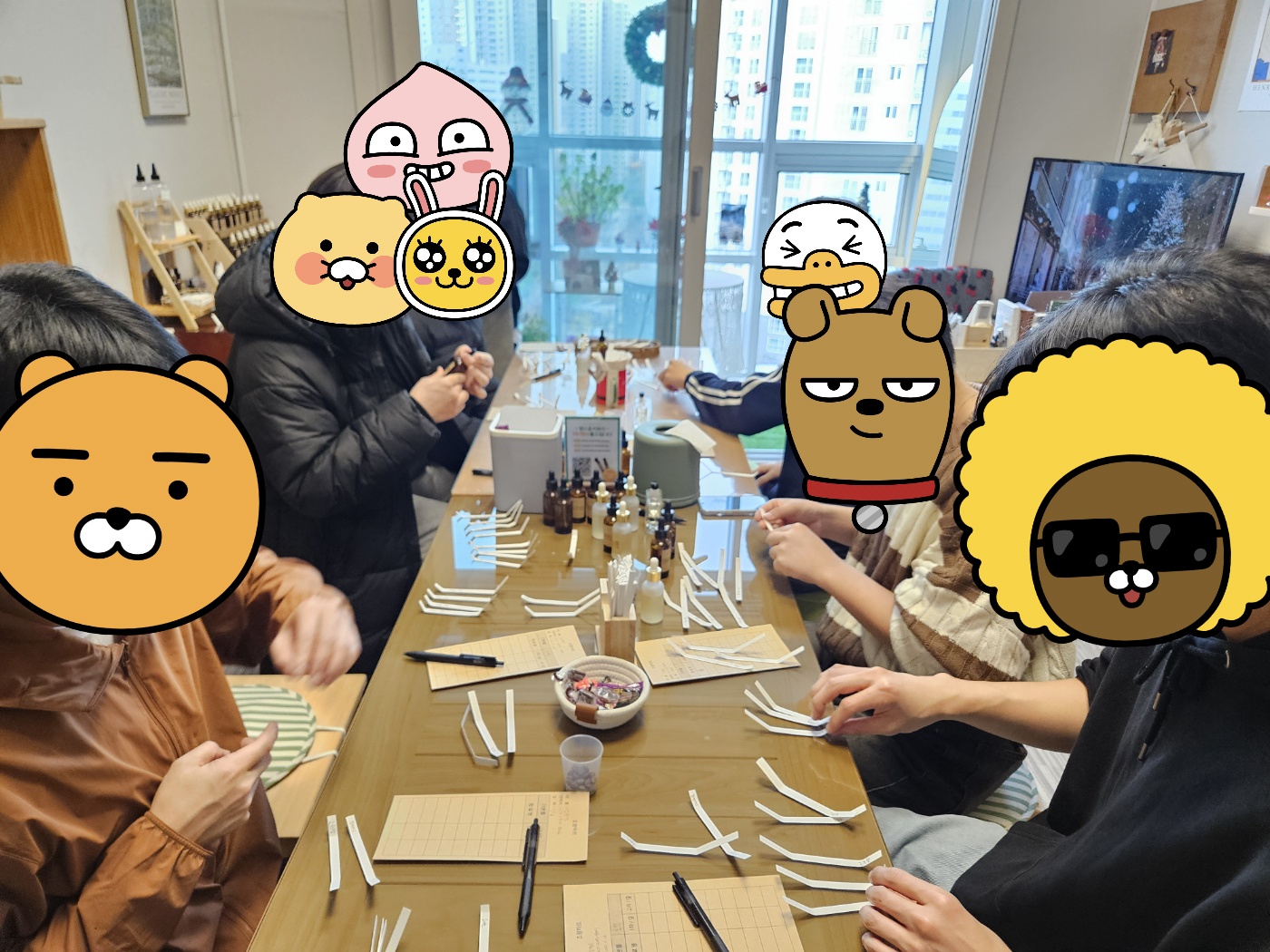 11월 26일 우리는 각자 본인들의 향기를 찾으러 향수 공방에 방문했습니다.본인의 감정과 특색에 맞춰 향기를 조합하여 각자 완벽한 향수를 만들었습니다!옆에 친구들의 향기도 맡아 칭찬하고 향을 통해 공감하며, 갑자기 추워진 날씨를 함께 녹이는 시간을 가졌습니다!